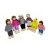 Joc familia lemn cu textil, 6 personaje ideale pentru jocuri cu mobilier. Dimensiuni personaje: 10cm; dimensiuni cutie: 20.5cm x 6.5cm x 11cm.