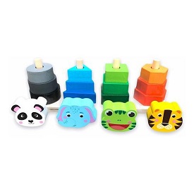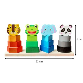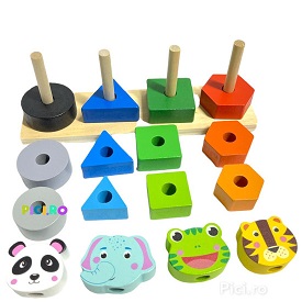 Turn stivuire forme 4 coloane cu animale, stimuleaza dezvoltarea atentiei, coordonarea mana-ochi, motricitatea fina şi imaginatia.