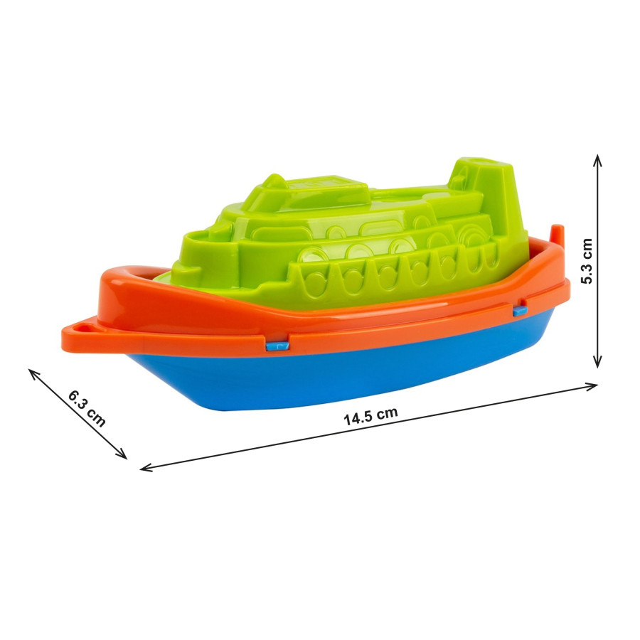 Vaporul de jucărie este un companion minunat pentru copii, ideal pentru joacă la mare, în nisip, în cadă sau în piscină. Dimensiunea sa compactă îl face ușor de transportat și mereu la îndemână—fie acasă, fie în vacanță.